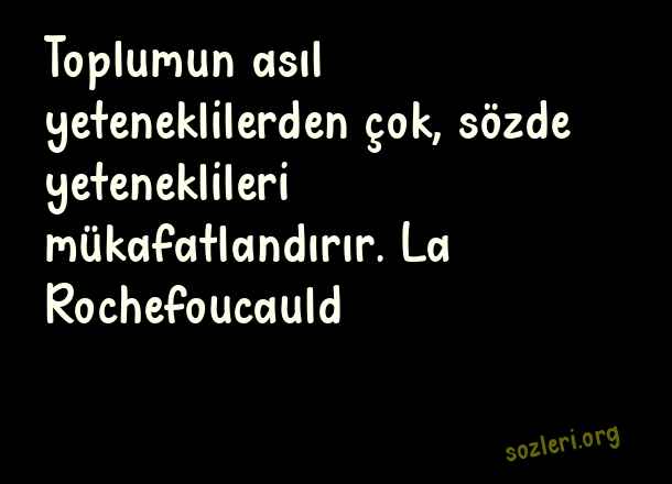 Toplumun asıl yeteneklilerden çok, sözde yeteneklileri mükafatlandırır. La Rochefoucauld ( Yetenek )