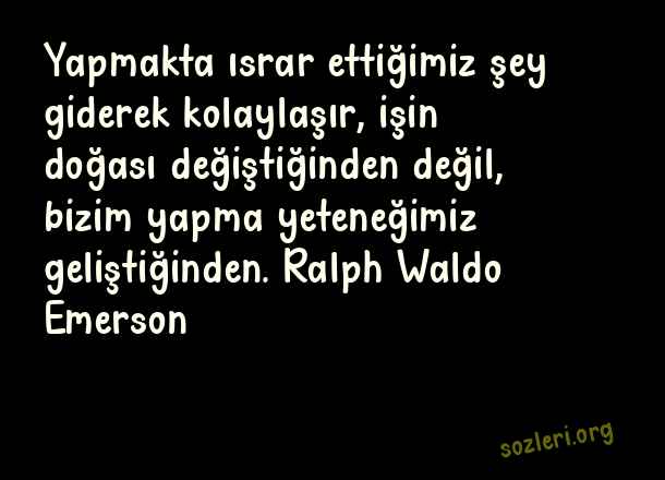 Yapmakta ısrar ettiğimiz şey giderek kolaylaşır, işin doğası değiştiğinden değil, bizim yapma yeteneğimiz geliştiğinden. Ralph Waldo Emerson ( Yetenek )