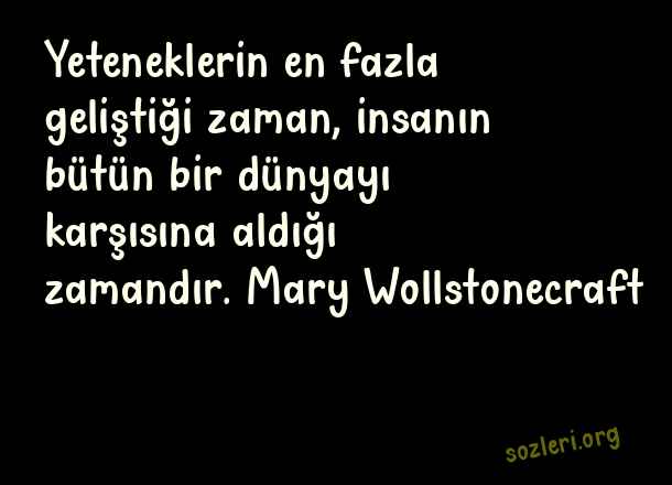 Yeteneklerin en fazla geliştiği zaman, insanın bütün bir dünyayı karşısına aldığı zamandır. Mary Wollstonecraft ( Yetenek )