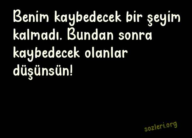 Benim kaybedecek bir şeyim kalmadı. Bundan sonra kaybedecek olanlar düşünsün! ( Yıkıcı Sözler )