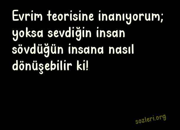 Evrim teorisine inanıyorum; yoksa sevdiğin insan sövdüğün insana nasıl dönüşebilir ki! ( Yıkıcı Sözler )