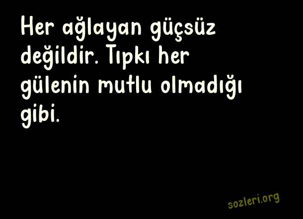 Her ağlayan güçsüz - Yıkıcı Sözler .. Her ağlayan güçsüz değildir. Tıpkı her gülenin mutlu olmadığı gibi. ( Yıkıcı Sözler )