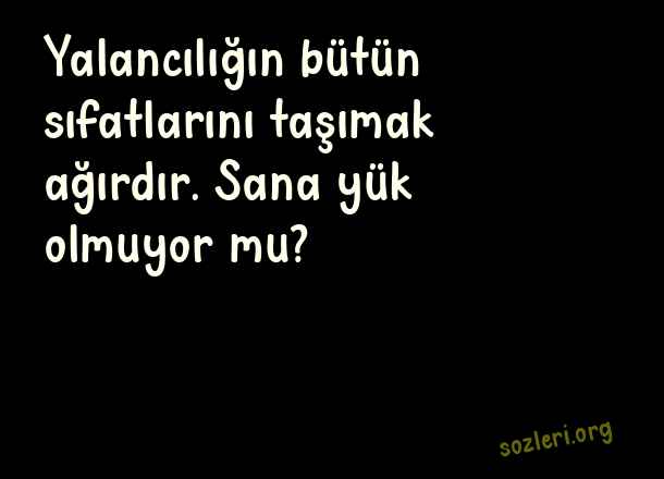 Yalancılığın bütün sıfatlarını - Yıkıcı Sözler .. Yalancılığın bütün sıfatlarını taşımak ağırdır. Sana yük olmuyor mu? ( Yıkıcı Sözler )