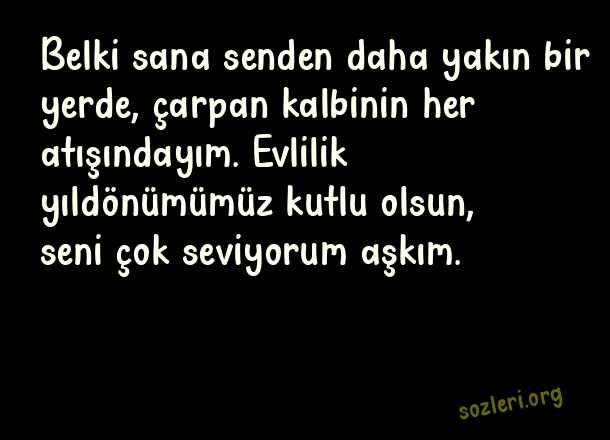 Belki sana senden daha yakın bir yerde, çarpan kalbinin her atışındayım. Evlilik yıldönümümüz kutlu olsun, seni çok seviyorum aşkım. ( Evlilik Yıldönümü )