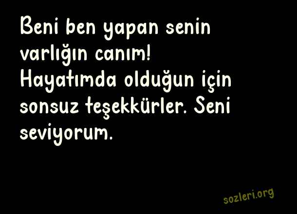 Beni ben yapan senin varlığın canım! Hayatımda olduğun için sonsuz teşekkürler. Seni seviyorum. ( Tanışma Yıldönümü )