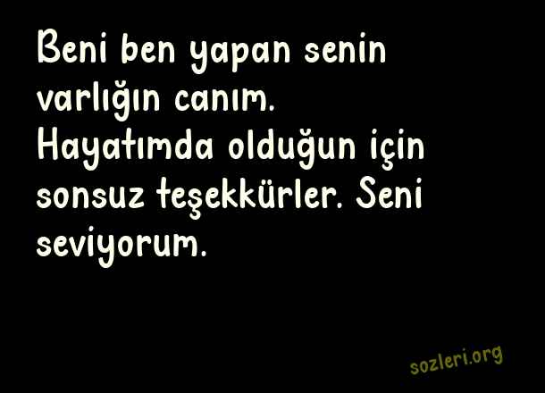 Beni ben yapan senin varlığın canım. Hayatımda olduğun için sonsuz teşekkürler. Seni seviyorum. ( Evlilik Yıldönümü )