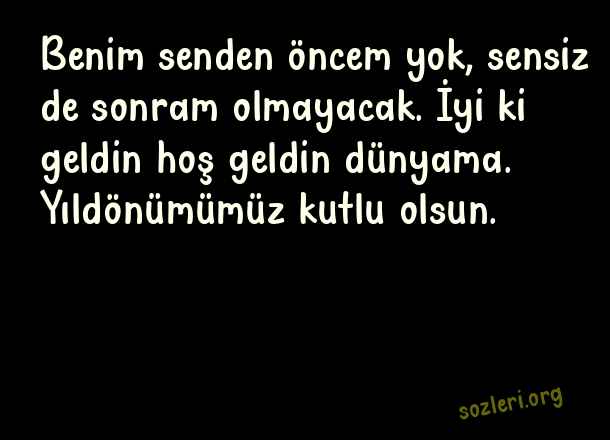 Benim senden öncem yok, sensiz de sonram olmayacak. İyi ki geldin hoş geldin dünyama. Yıldönümümüz kutlu olsun. ( Sevgiliye Yıldönümü )