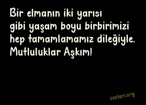 Bir elmanın iki yarısı gibi yaşam boyu birbirimizi hep tamamlamamız dileğiyle. Mutluluklar Aşkım! ( Tanışma Yıldönümü )