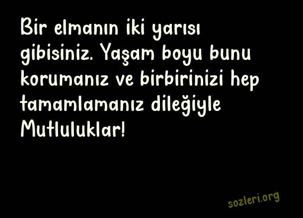 Bir elmanın iki yarısı gibisiniz. Yaşam boyu bunu korumanız ve birbirinizi hep tamamlamanız dileğiyle… Mutluluklar! ( Kocaya Evlilik Yıldönümü )