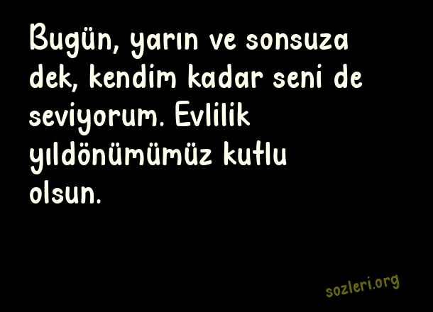 Bugün, yarın ve sonsuza dek, kendim kadar seni de seviyorum. Evlilik yıldönümümüz kutlu olsun. ( Evlilik Yıldönümü )