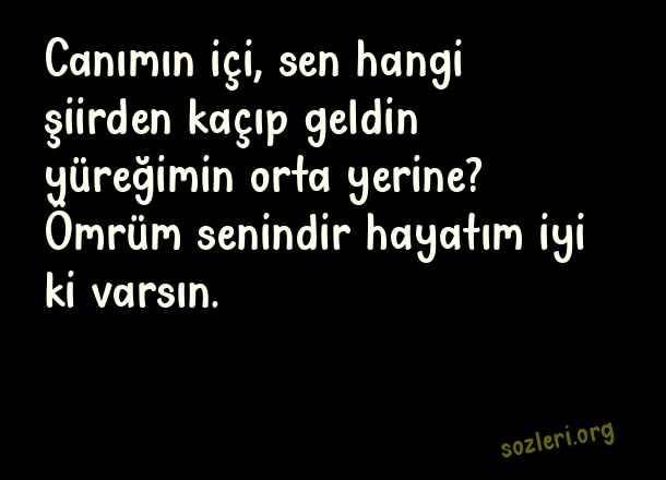 Canımın içi, sen hangi şiirden kaçıp geldin yüreğimin orta yerine? Ömrüm senindir hayatım iyi ki varsın. ( Eşe Yıldönümü )