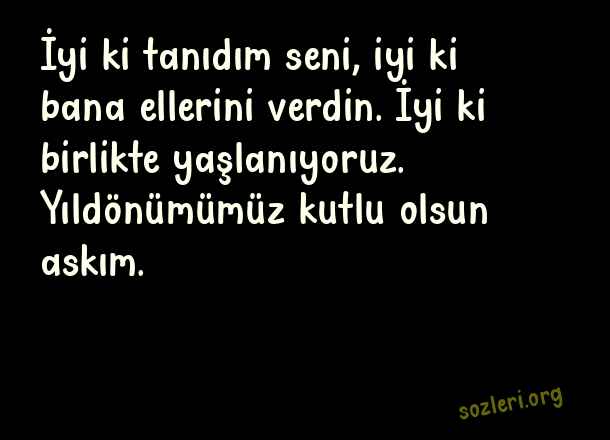 İyi ki tanıdım seni, iyi ki bana ellerini verdin. İyi ki birlikte yaşlanıyoruz. Yıldönümümüz kutlu olsun askım. ( Yıldönümü )
