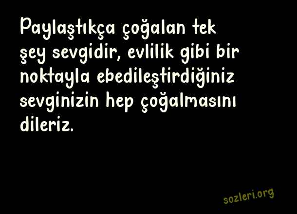 Paylaştıkça çoğalan tek şey sevgidir, evlilik gibi bir noktayla ebedileştirdiğiniz sevginizin hep çoğalmasını dileriz. ( Eşe Yıldönümü )