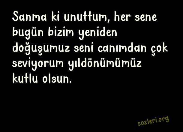 Sanma ki unuttum, her sene bugün bizim yeniden doğuşumuz seni canımdan çok seviyorum yıldönümümüz kutlu olsun. ( Sevgiliye Yıldönümü )