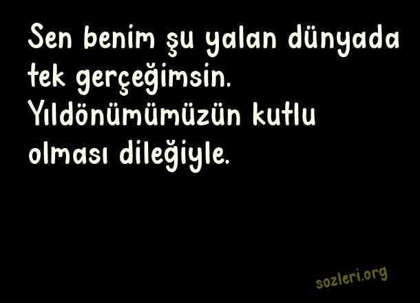 Sen benim şu - Eşe Yıldönümü Mesajları .. Sen benim şu yalan dünyada tek gerçeğimsin. Yıldönümümüzün kutlu olması dileğiyle. ( Eşe Yıldönümü )