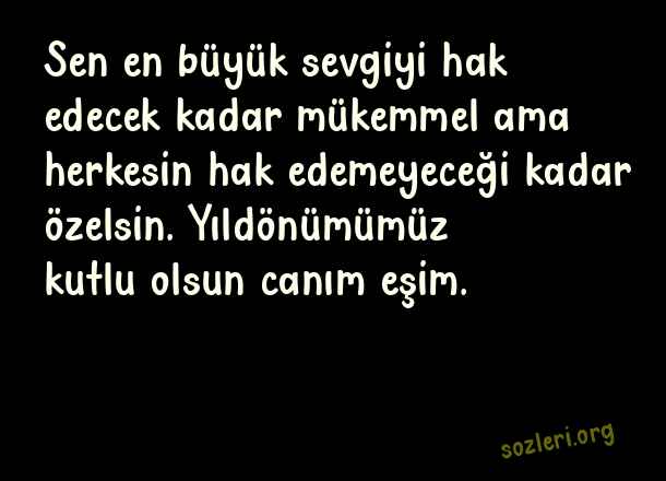 Sen en büyük sevgiyi hak edecek kadar mükemmel ama herkesin hak edemeyeceği kadar özelsin. Yıldönümümüz kutlu olsun canım eşim. ( Eşe Yıldönümü )