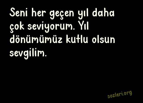 Seni her geçen yıl daha çok seviyorum. Yıl dönümümüz kutlu olsun sevgilim. ( Evlilik Yıldönümü )