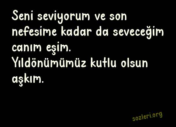 Seni seviyorum ve son nefesime kadar da seveceğim canım eşim. Yıldönümümüz kutlu olsun aşkım. ( Eşe Yıldönümü )