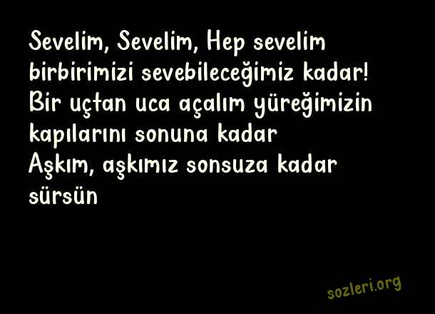 Sevelim, Sevelim, Hep sevelim birbirimizi sevebileceğimiz kadar! Bir uçtan uca açalım yüreğimizin kapılarını sonuna kadar… Aşkım, aşkımız sonsuza kadar sürsün… ( Yıldönümü )
