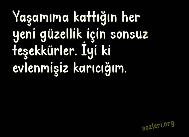 Yaşamıma kattığın her yeni güzellik için sonsuz teşekkürler. İyi ki evlenmişiz karıcığım. ( Evlilik Yıldönümü )