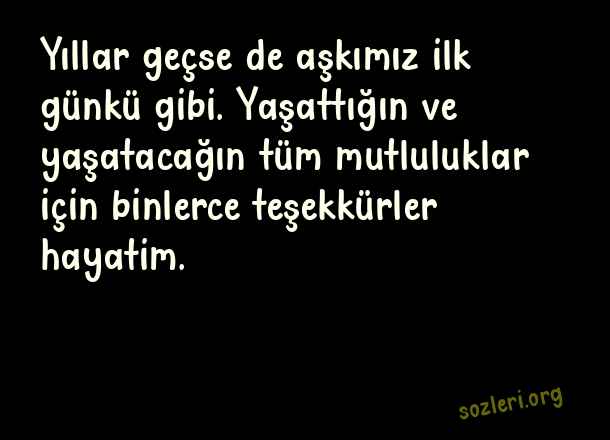 Yıllar geçse de aşkımız ilk günkü gibi. Yaşattığın ve yaşatacağın tüm mutluluklar için binlerce teşekkürler hayatim. ( Eşe Yıldönümü )