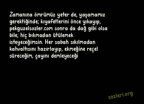 Zamanına ömrümüz yeter de, yaşamamız gerektiğinde; kıyafetlerini önce yıkayıp, sonra da dağ gibi olsa bile; hiç bıkmadan ütülemek isteyeceğimsin. Her sabah sıkılmadan kahvaltısını hazırlayıp, ekmeğine reçel süreceğim, çayını demleyeceği ( Eşe Yıldönümü )