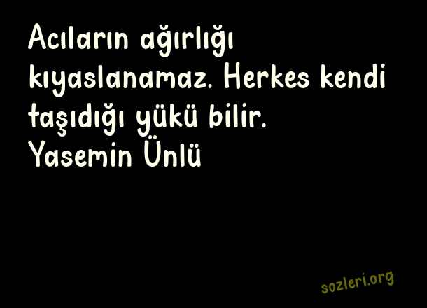 Acıların ağırlığı kıyaslanamaz. Herkes kendi taşıdığı yükü bilir. Yasemin Ünlü ( Yük )