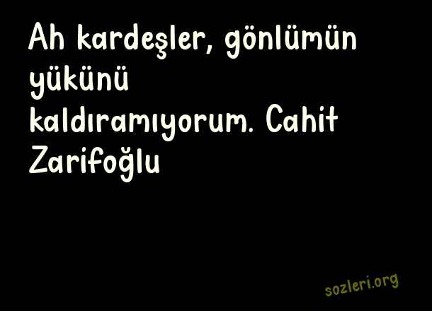 Ah kardeşler, gönlümün - Yük İle İlgili Sözler .. Ah kardeşler, gönlümün yükünü kaldıramıyorum. Cahit Zarifoğlu ( Yük )