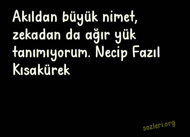Akıldan büyük nimet, zekadan da ağır yük tanımıyorum. Necip Fazıl Kısakürek ( Yük )