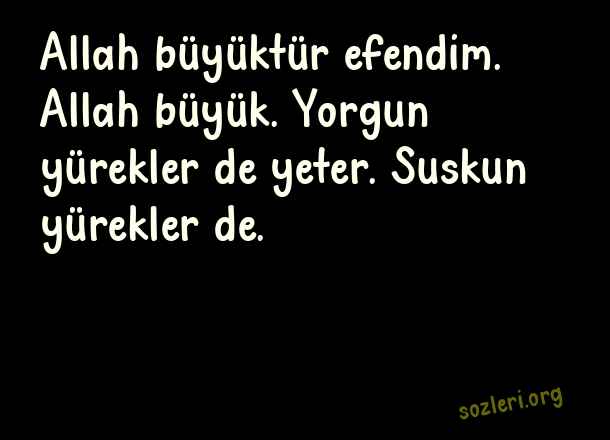 Allah büyüktür efendim. Allah büyük. Yorgun yürekler de yeter. Suskun yürekler de. ( Allah Büyük )