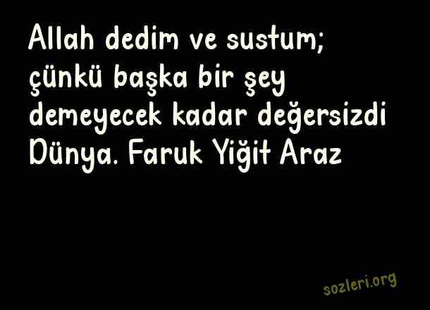 Allah dedim ve sustum; çünkü başka bir şey demeyecek kadar değersizdi Dünya. Faruk Yiğit Araz ( Allah Büyük )