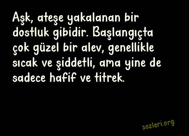 Aşk, ateşe yakalanan bir dostluk gibidir. Başlangıçta çok güzel bir alev, genellikle sıcak ve şiddetli, ama yine de sadece hafif ve titrek. ( Büyük Aşk )