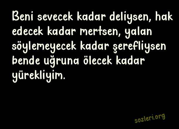 Beni sevecek kadar deliysen, hak edecek kadar mertsen, yalan söylemeyecek kadar şerefliysen bende uğruna ölecek kadar yürekliyim. ( Büyük Aşk )