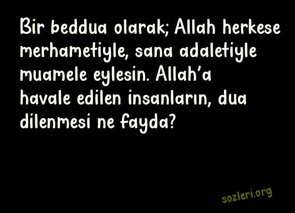 Bir beddua olarak; Allah herkese merhametiyle, sana adaletiyle muamele eylesin. Allah’a havale edilen insanların, dua dilenmesi ne fayda? ( Allah Büyük )