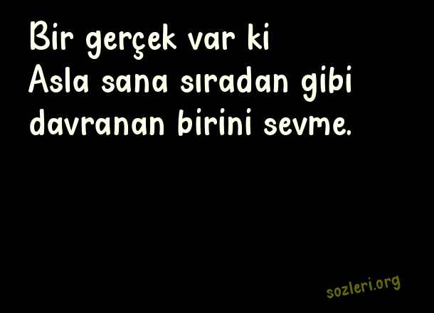 Bir gerçek var - Büyük Aşk Sözleri .. Bir gerçek var ki… Asla sana sıradan gibi davranan birini sevme. ( Büyük Aşk )