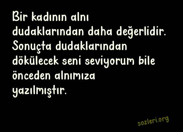Bir kadının alnı dudaklarından daha değerlidir. Sonuçta dudaklarından dökülecek seni seviyorum bile önceden alnımıza yazılmıştır. ( Büyük Aşk )