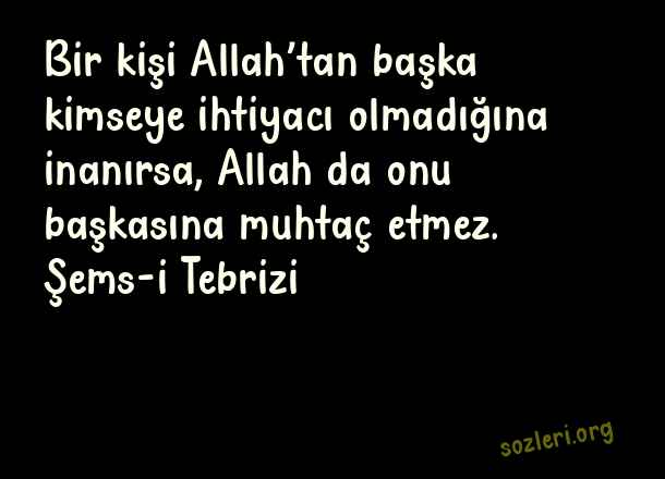 Bir kişi Allah’tan başka kimseye ihtiyacı olmadığına inanırsa, Allah da onu başkasına muhtaç etmez. Şems-i Tebrizi ( Allah Büyük )