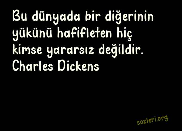 Bu dünyada bir - Yük İle İlgili Sözler .. Bu dünyada bir diğerinin yükünü hafifleten hiç kimse yararsız değildir. Charles Dickens ( Yük )