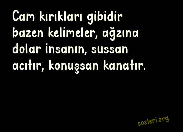 Cam kırıkları gibidir bazen kelimeler, ağzına dolar insanın, sussan acıtır, konuşsan kanatır. ( Büyük Aşk )