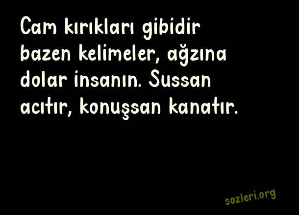 Cam kırıkları gibidir bazen kelimeler, ağzına dolar insanın. Sussan acıtır, konuşsan kanatır. ( Büyük Sözler )