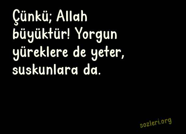 Çünkü; Allah büyüktür! Yorgun yüreklere de yeter, suskunlara da. ( Allah Büyük )