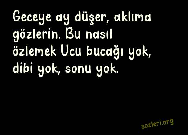 Geceye ay düşer, aklıma gözlerin. Bu nasıl özlemek…Ucu bucağı yok, dibi yok, sonu yok. ( Büyük Aşk )