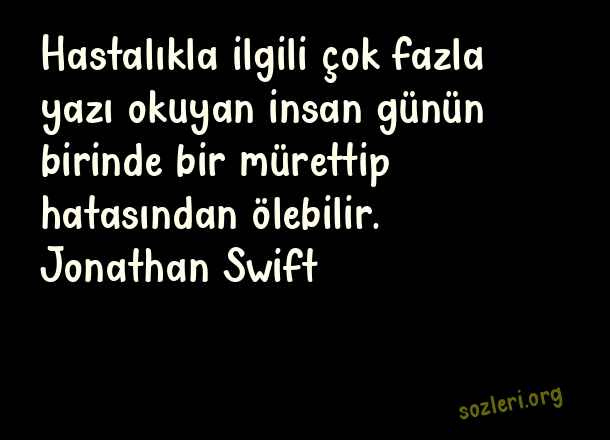 Hastalıkla ilgili çok fazla yazı okuyan insan günün birinde bir mürettip hatasından ölebilir. Jonathan Swift ( Büyük Sözler )