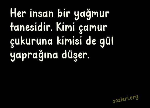 Her insan bir - Büyük Aşk Sözleri .. Her insan bir yağmur tanesidir. Kimi çamur çukuruna kimisi de gül yaprağına düşer. ( Büyük Aşk )