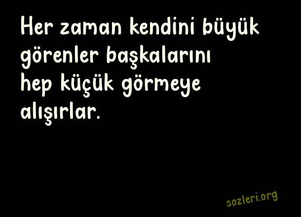 Her zaman kendini büyük görenler başkalarını hep küçük görmeye alışırlar. ( Kendini Büyük Görmek )