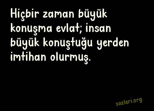 Hiçbir zaman büyük konuşma evlat; insan büyük konuştuğu yerden imtihan olurmuş. ( Büyük Konuşmak )
