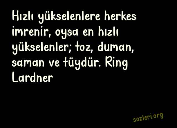 Hızlı yükselenlere herkes imrenir oysa en hızlı yükselenler toz duman, saman ve tüydür. Ring Lardner