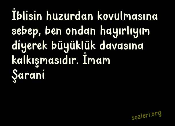 İblisin huzurdan kovulmasına sebep, ben ondan hayırlıyım diyerek büyüklük davasına kalkışmasıdır. İmam Şarani ( Kendini Büyük Görmek )