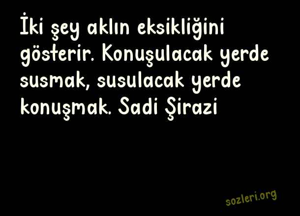 İki şey aklın eksikliğini gösterir. Konuşulacak yerde susmak, susulacak yerde konuşmak. Sadi Şirazi ( Büyük Konuşmak )