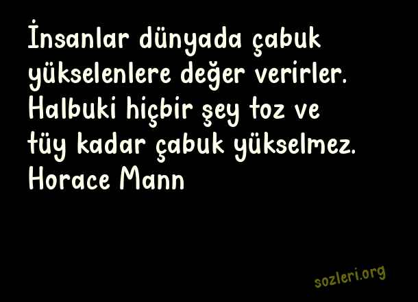 İnsanlar dünyada çabuk yükselenlere değer verirler. Halbuki hiçbir şey toz ve tüy kadar çabuk yükselmez. Horace Mann ( Yükselmek )